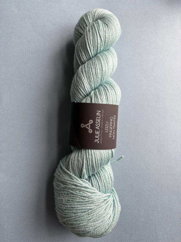 Julie Asselin Leizu Fingering is a non-superwash yarn with a refined, natural character. Spun from a blend of merino and silk, it offers softness, gentle elasticity, and a subtle sheen. Its matte finish combined with a touch of luster makes it ideal for garments, accessories, and timeless pieces with elegant drape.