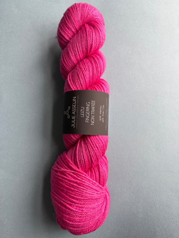 Julie Asselin Leizu Fingering is a non-superwash yarn with a refined, natural character. Spun from a blend of merino and silk, it offers softness, gentle elasticity, and a subtle sheen. Its matte finish combined with a touch of luster makes it ideal for garments, accessories, and timeless pieces with elegant drape.